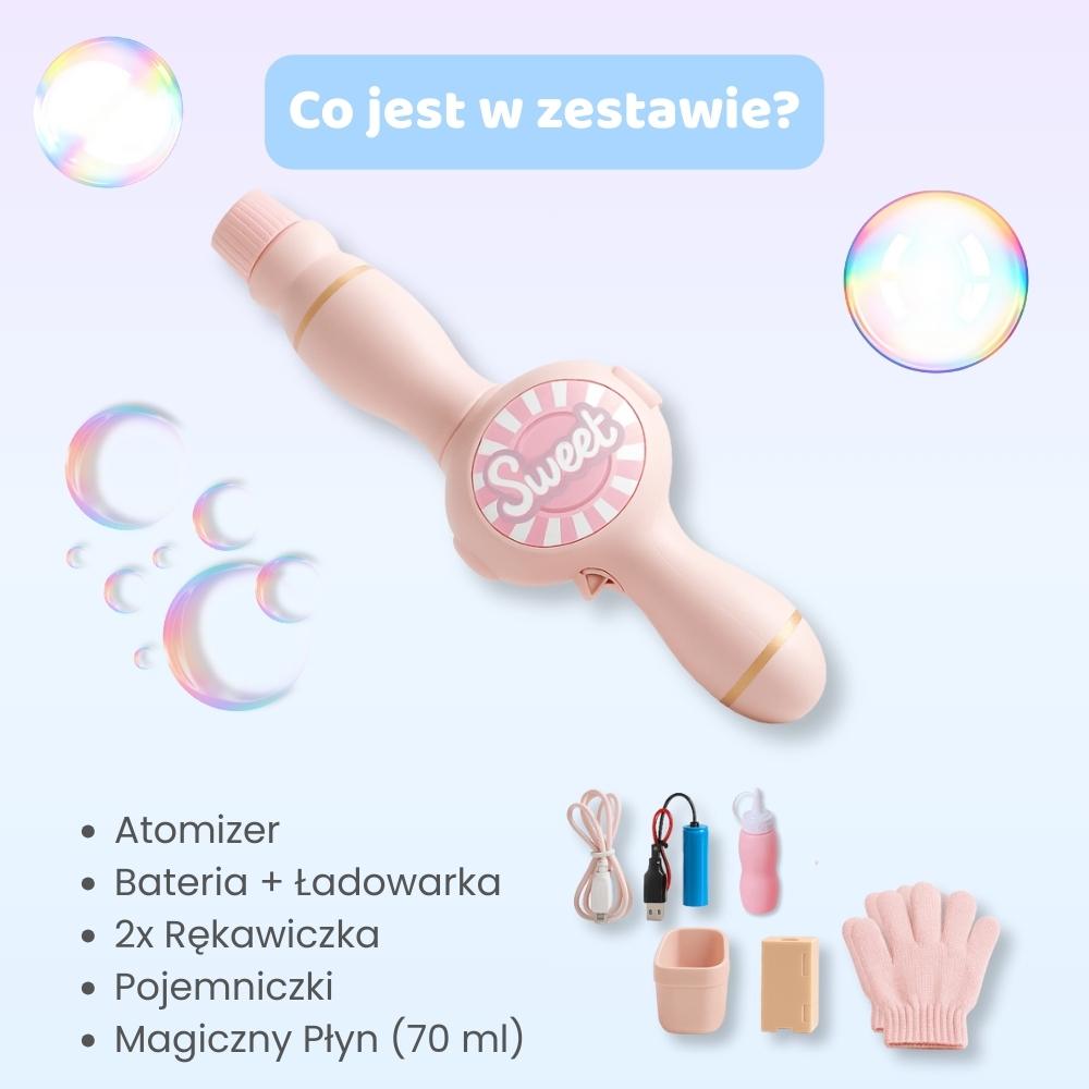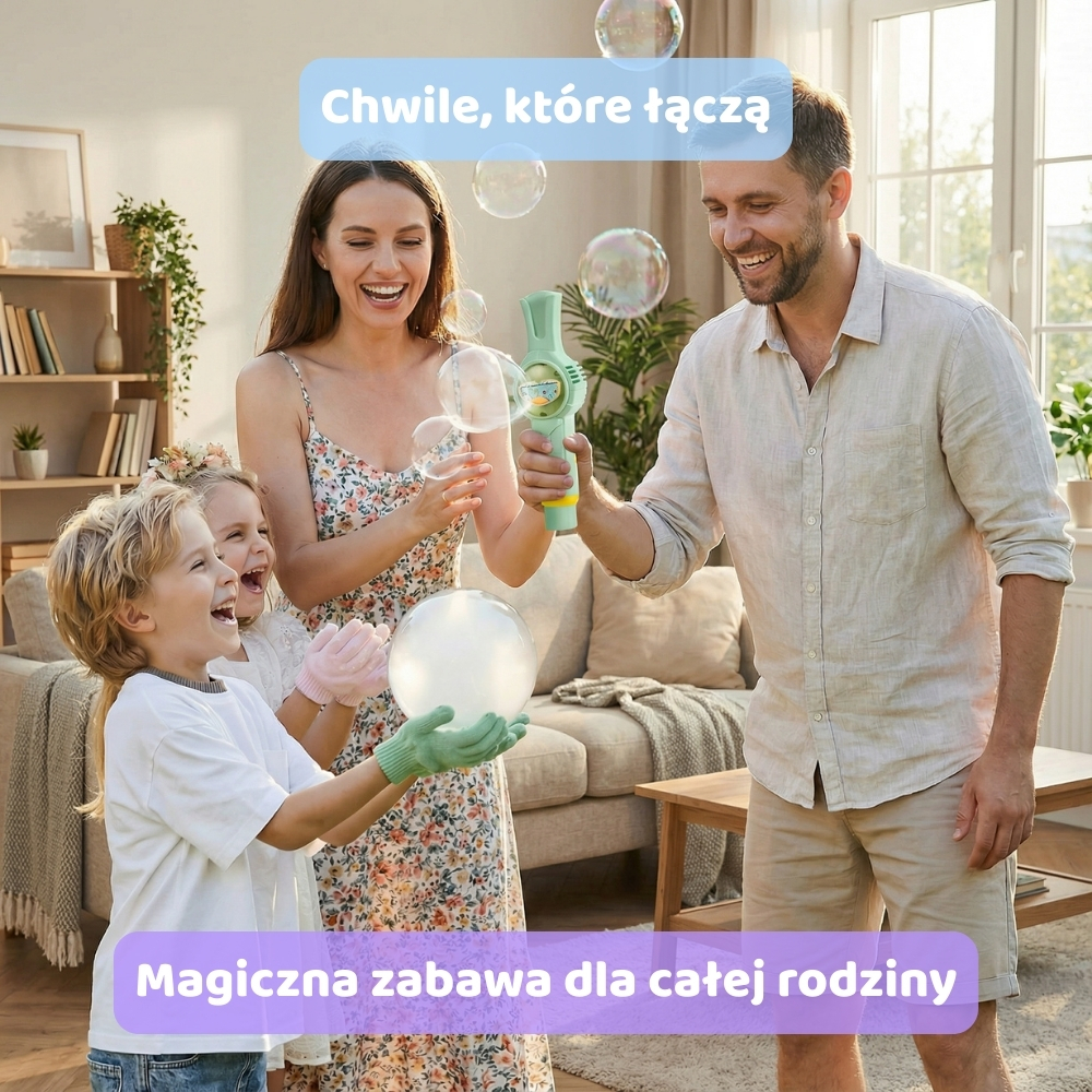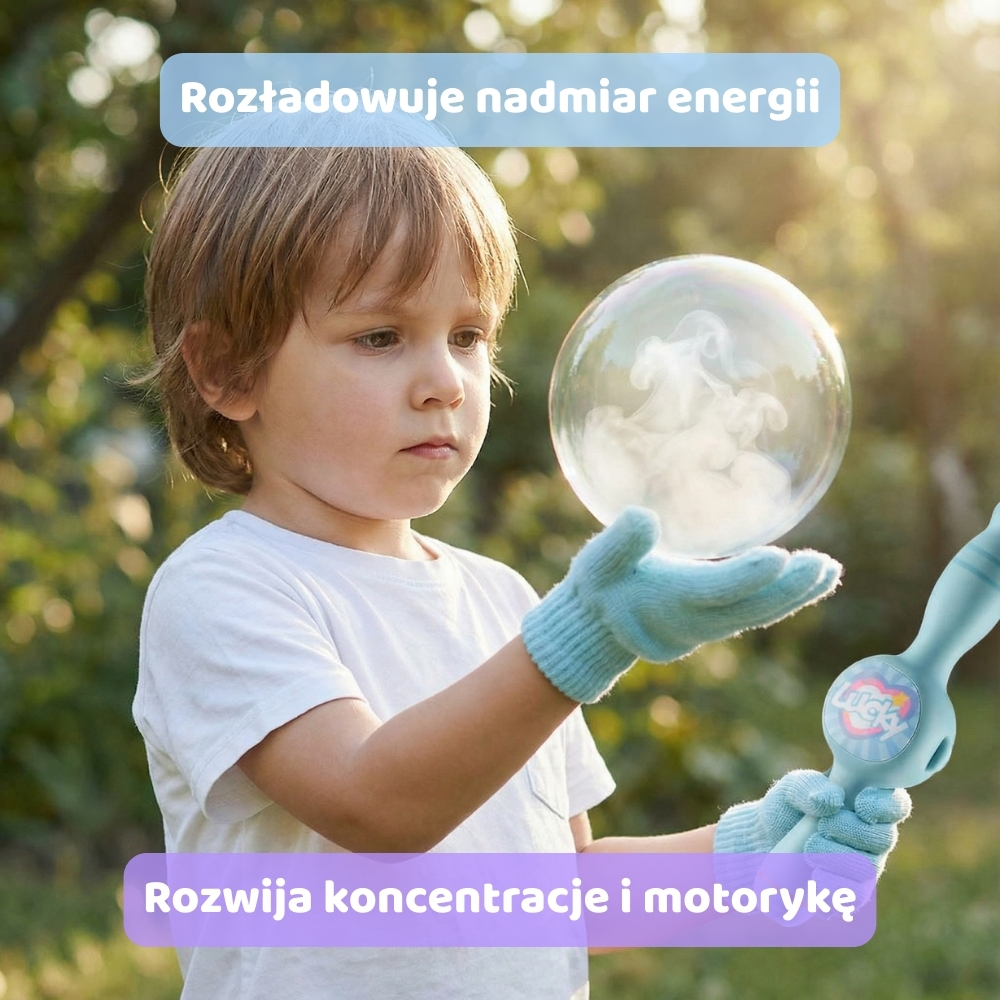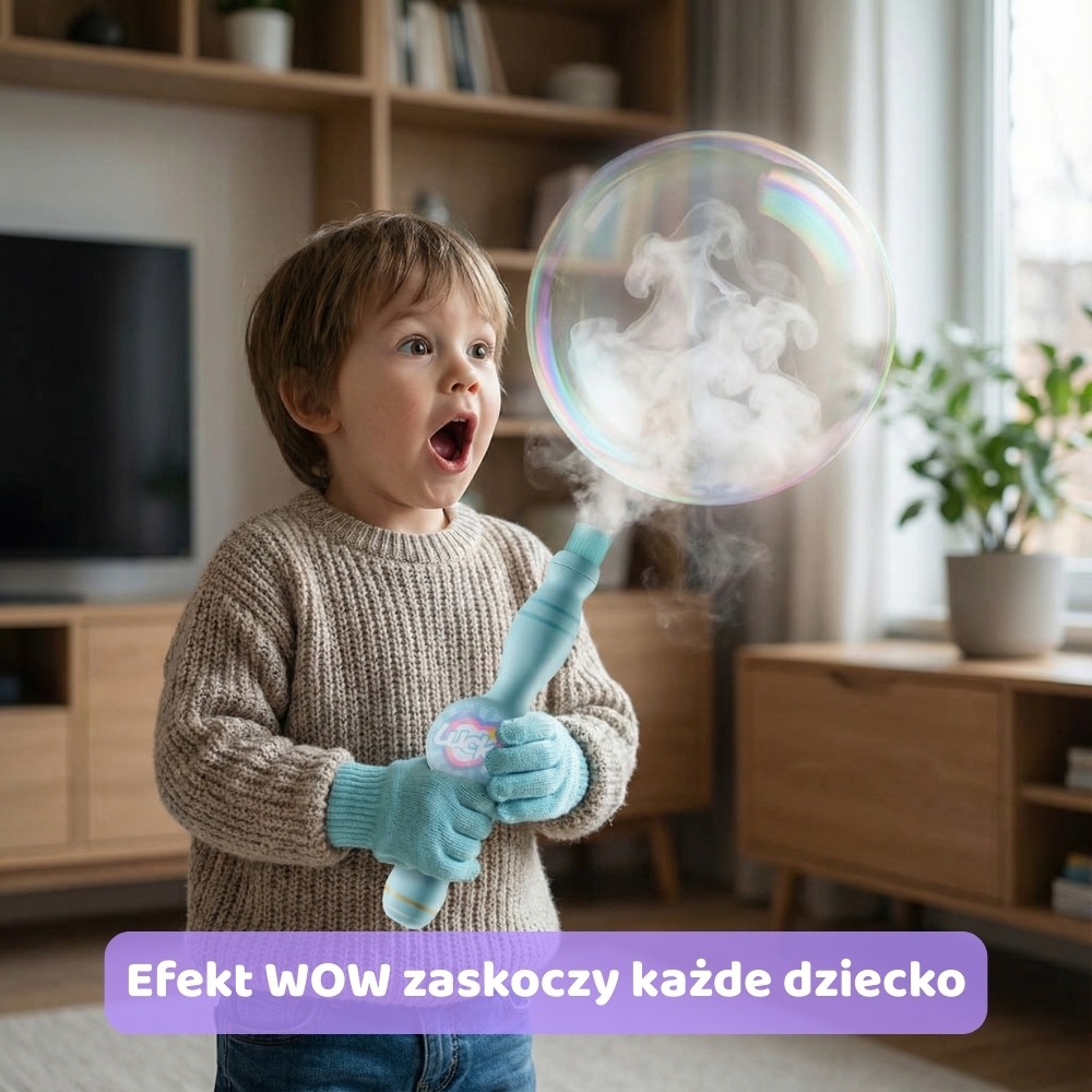 Interaktywna zabawka tworząca magiczne bańki z dymem, które można łapać i odbijać, gwarantując świetną zabawę.